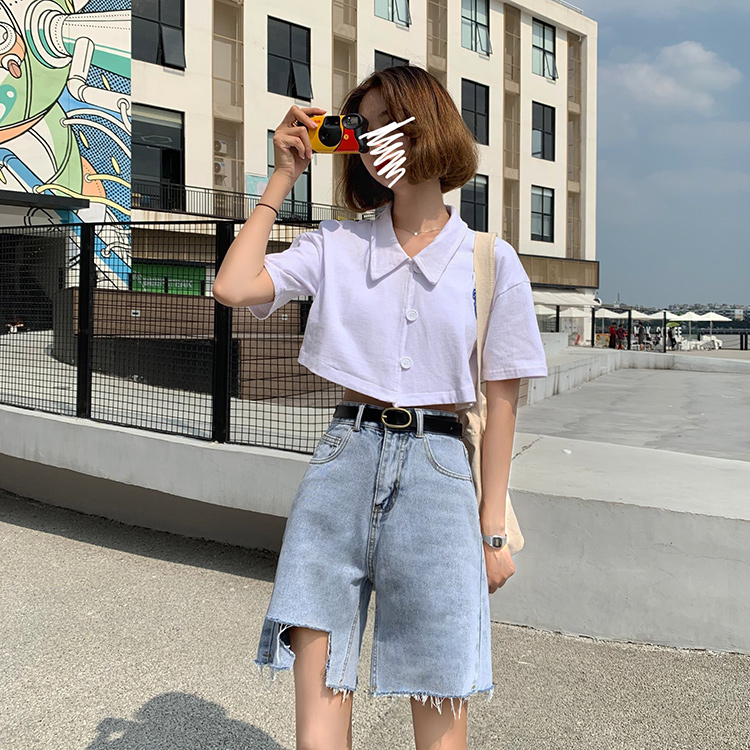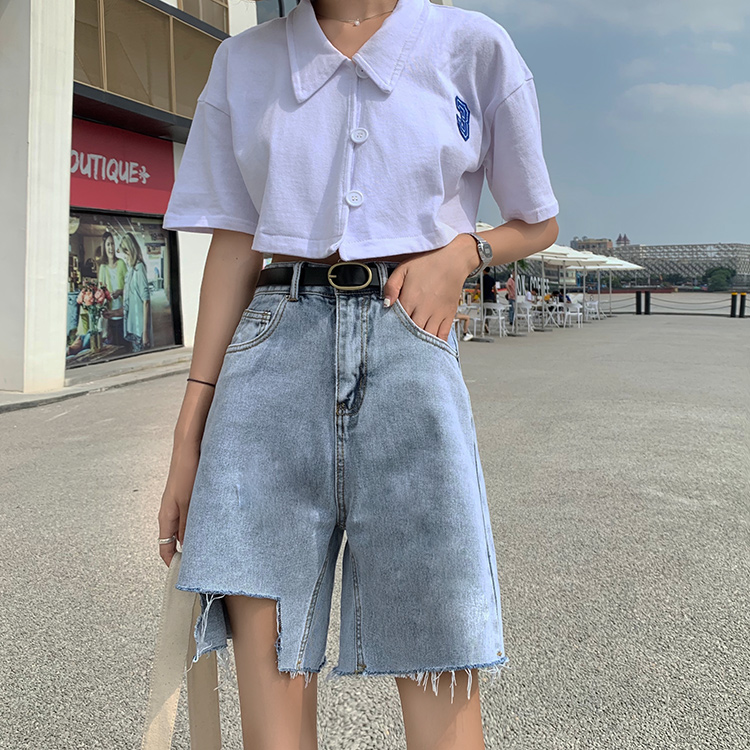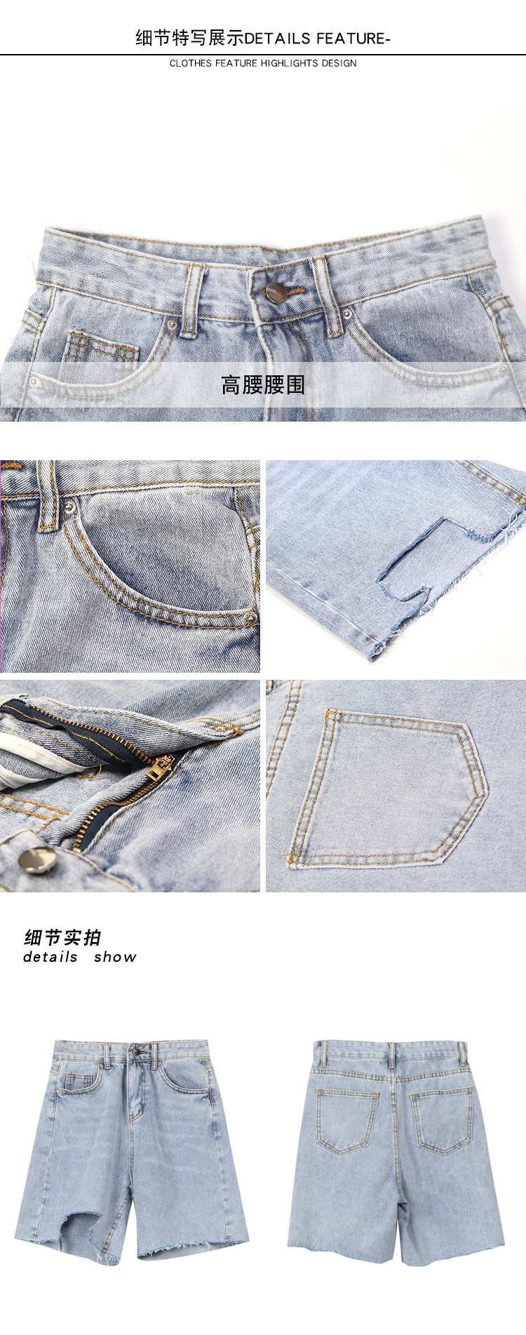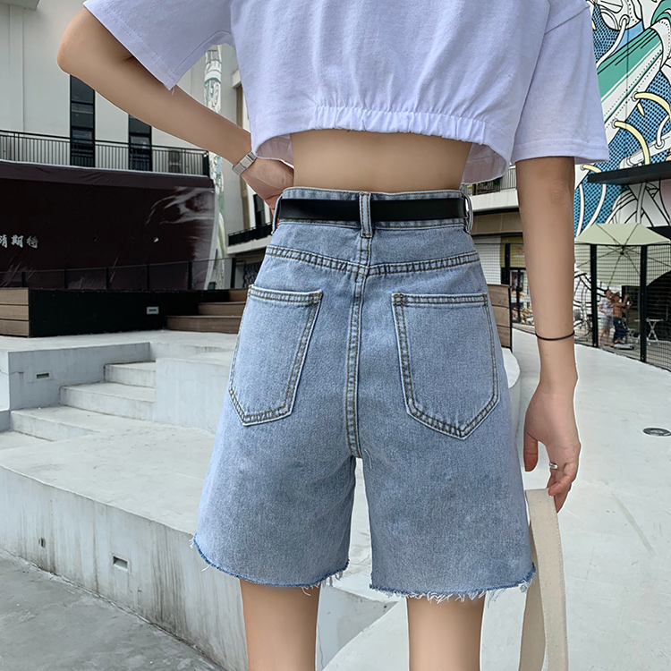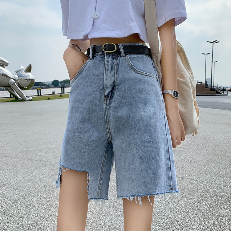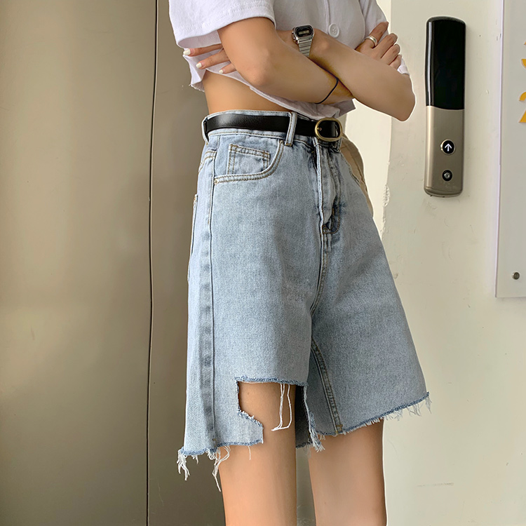 港味宽松显瘦休闲直筒裤夏装破洞毛边百搭高