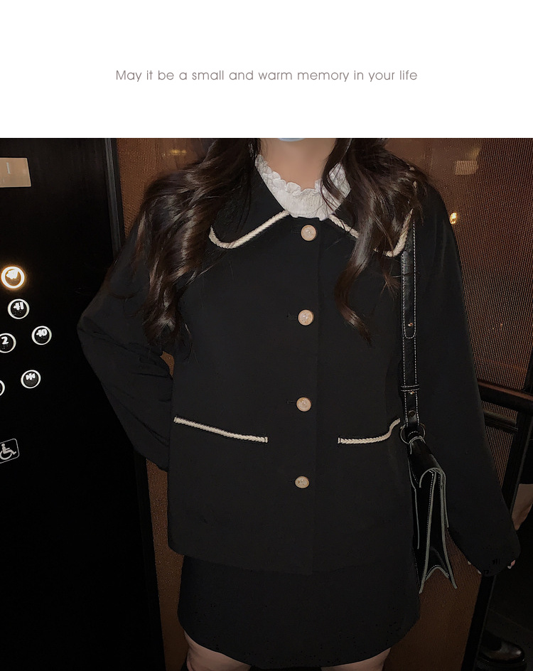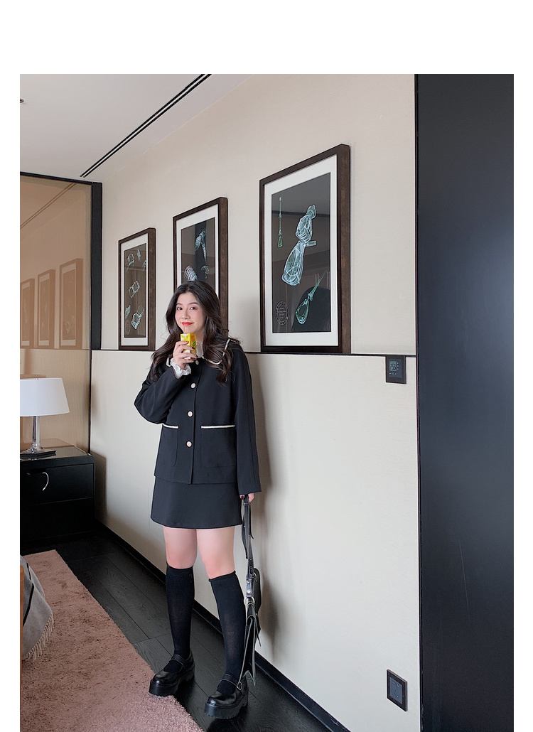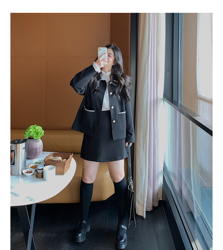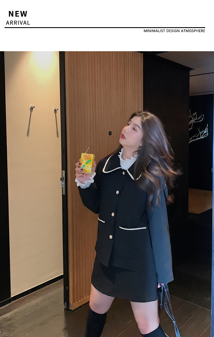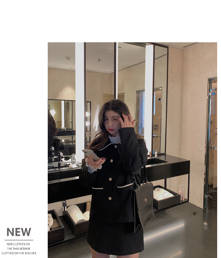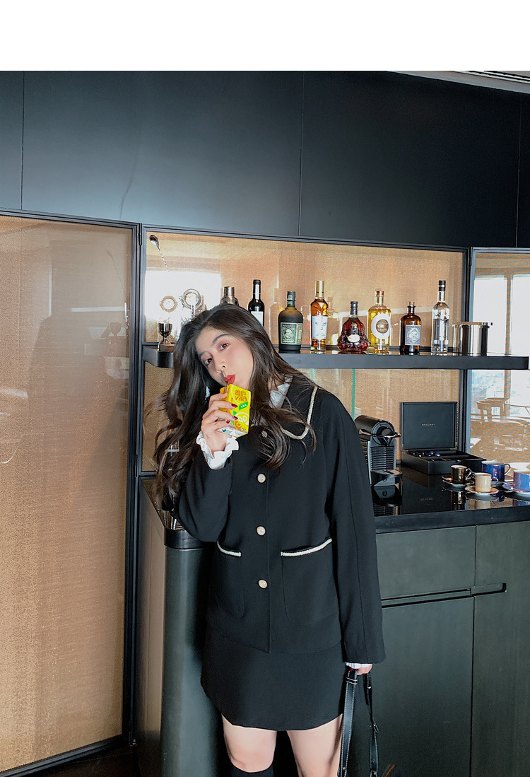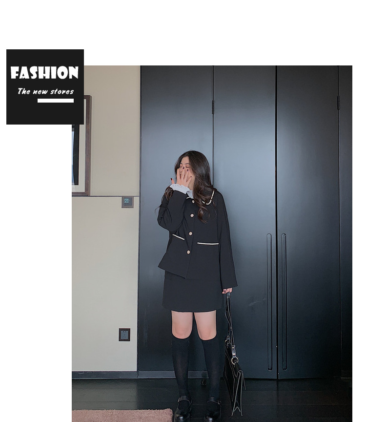 黑色洋气小香风套装女...