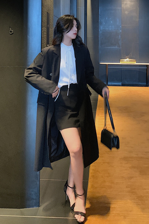 ins网红黑色V领长...